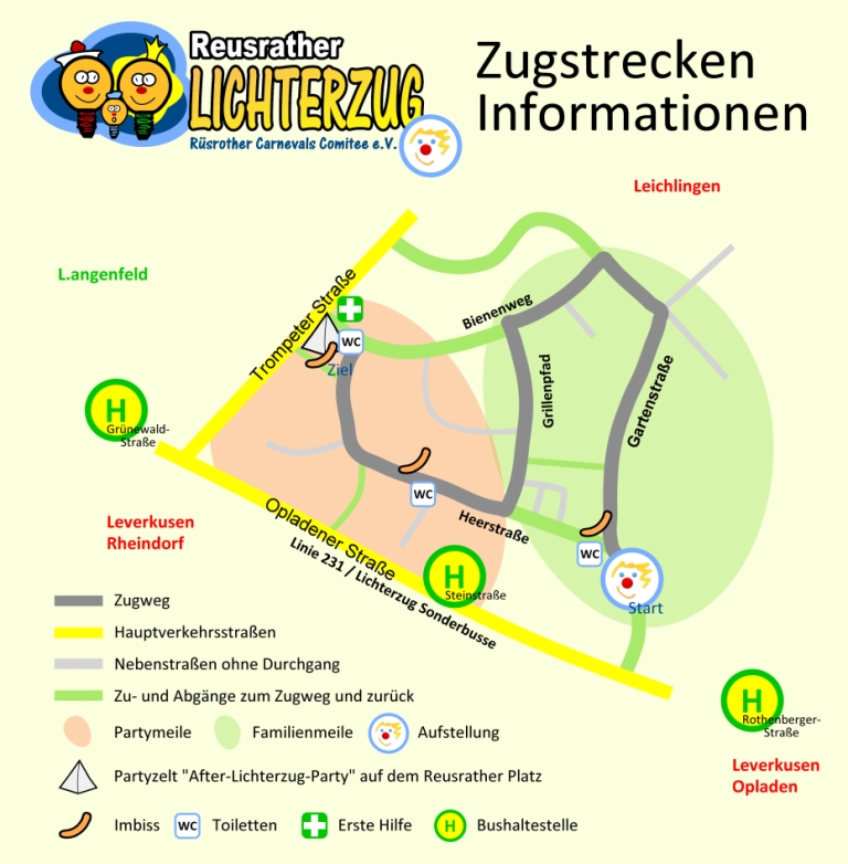 Zusätzlich werden dieses Jahr auch Busse aus Opladen eingesetzt. Ein Sonderbus startet vom Opladener Busbahnhof um 17.50 Uhr Richtung Reusrath. Zurück ab der Grünewaldstraße geht es dann Richtung Opladen Busbahnhof um 20.45 Uhr.